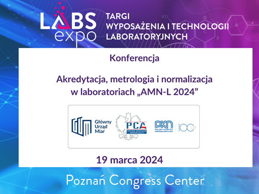 Konferencja organizowana przez Główny Urząd Miar, Polskie Centrum Akredytacji oraz Polski Komitet Normalizacyjny - Akredytacja, metrologia i normalizacja w laboratoriach „AMN-L 2024” - 19 marca, godzina 10:00